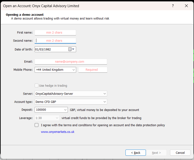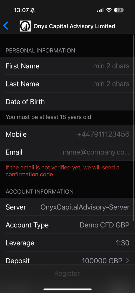 Register Your Demo Account: Select the option to register a new demo account.