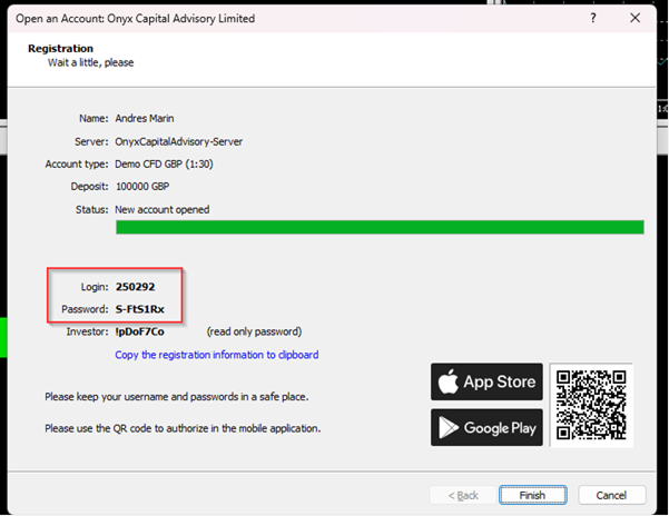 Save Your Login Details: Your demo account login details will be shown. Save these credentials to ensure you can always access your account.